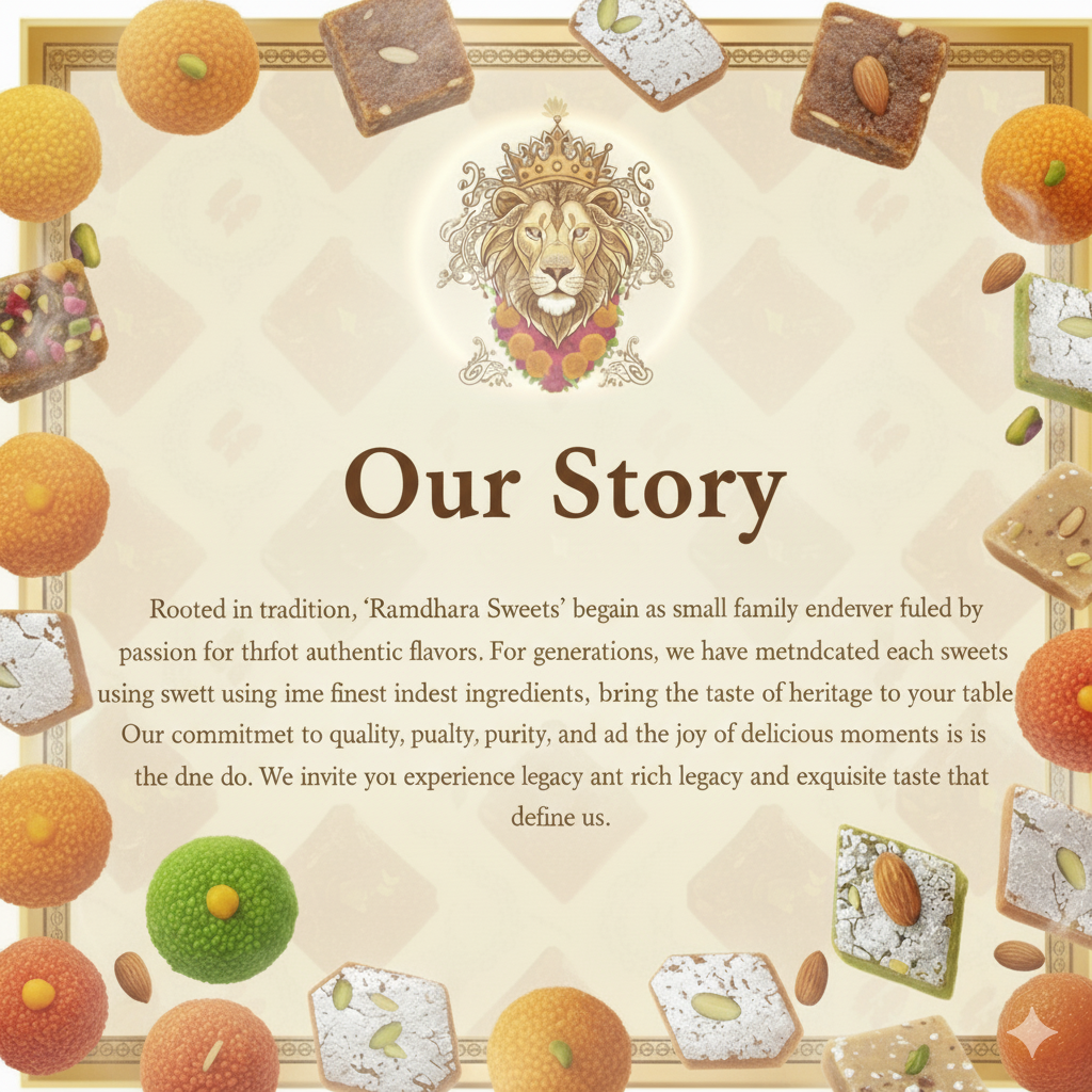 From the rich flavors of ghee-laden laddus to the delicate sweetness of barfis, every piece is prepared using age-old recipes passed down through generations — blended with a modern touch of hygiene and presentation.