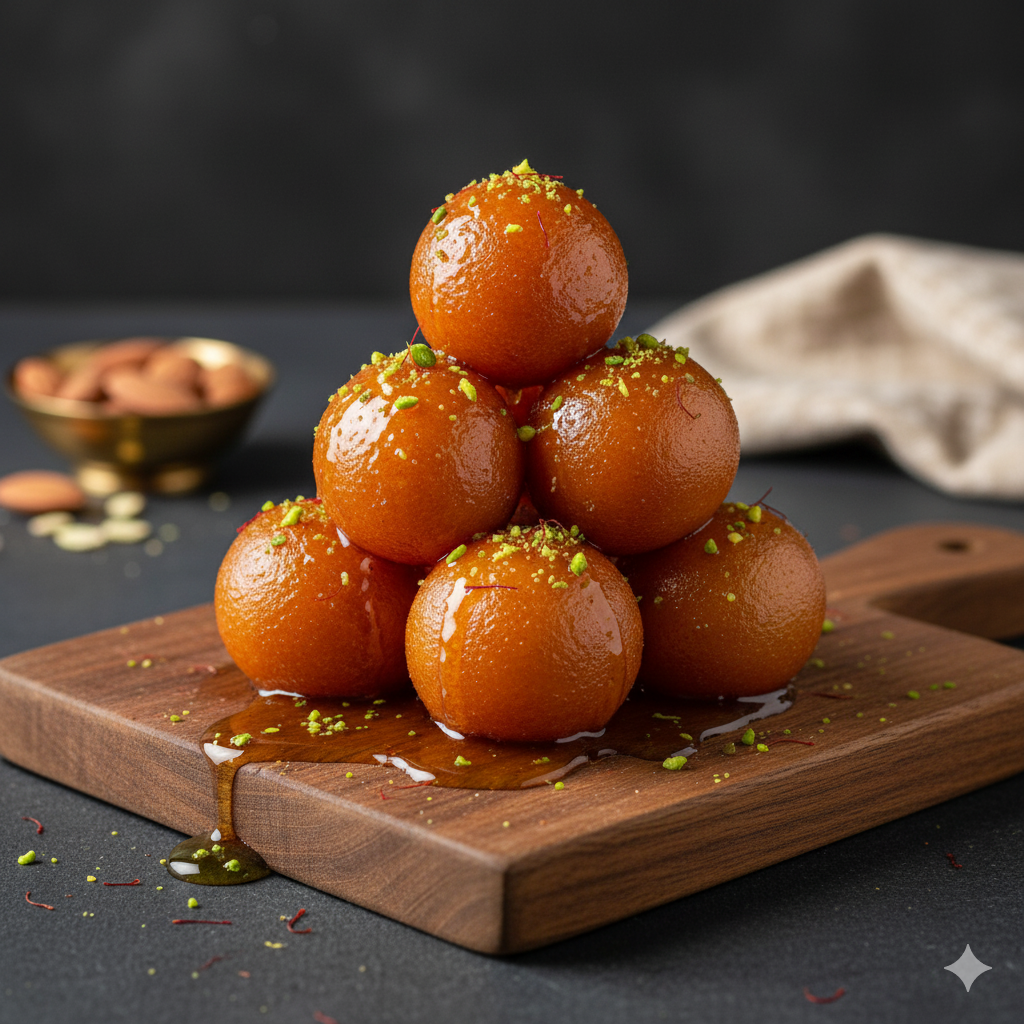 Melt-in-mouth Gulab Jamuns made with love and traditional perfection.